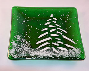 Green Plate w/White Tree