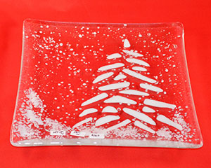 Clear Plate w/White Tree