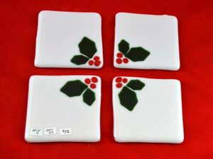White Coasters w/Holly & Berries